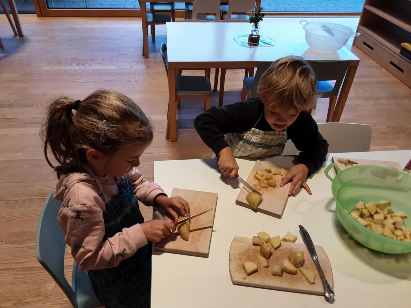Die Kinder übernehmen dabei altersgemäße Aufgaben wie Waschen, Rühren, Aufschneiden, Kneten, Formen und Mixen. Der Jausentag bietet den Kindern die Möglichkeit, unterschiedliche Lebensmittel kennenzulernen, sich an neue Geschmacksrichtungen heranzutasten und hauswirtschaftlich tätig zu werden. Gleichzeitig werden Alltagskompetenzen wie Selbstständigkeit, Fein- und Grobmotorik sowie gemeinsames Arbeiten gefördert.